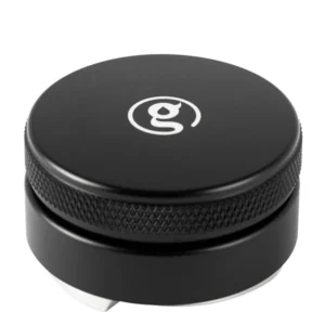 Dụng cụ màu đen, đường kính 58mm, giúp phân phối đều bột cà phê trong portafilter trước khi nén.